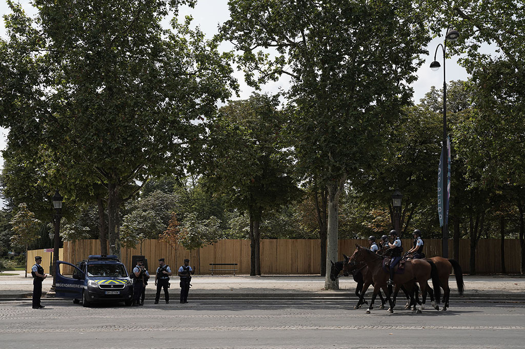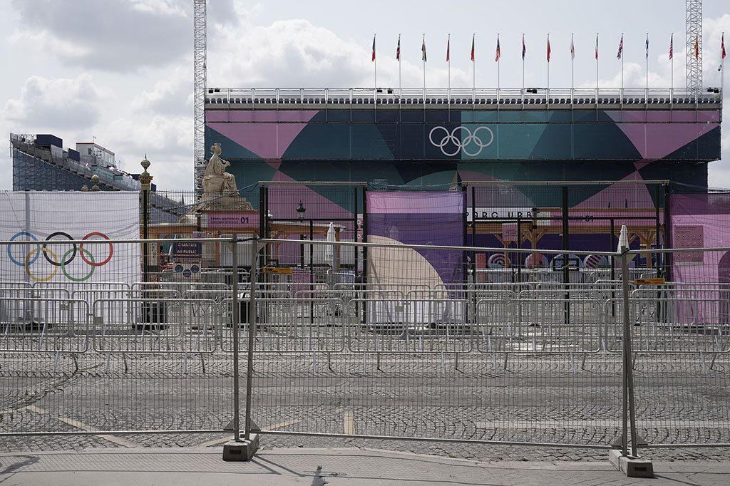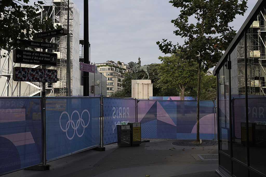 Depuis des mois les autorités insistent : “Faites votre demande de Pass Jeux”. Les Parisiens concernés, rétifs à toute injonction administrative, préfèrent, s’ils le peuvent, quitter la capitale. Les médias annoncent un déferlement de touristes pour l’occasion ; raison de plus pour fuir. Ces JO leur ont été imposés ; ils n’en n’ont que faire. Des barrières grillagées sont dressées tout autour de la Zone. Ce sont 45.000 policiers et militaires qui quadrillent Paris, avec l’aide de renforts venus d’une quarantaine de pays.