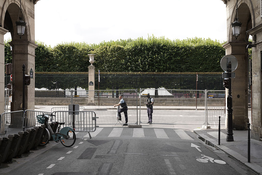 Durant les 10 jours qui précèdent la cérémonie d’ouverture des JO de Paris, la préfecture de police ordonne le bouclage des rues autour de la Seine. Seules peuvent pénétrer dans le périmètre dit noir, les personnes ayant été accréditées par le comité d’organisation des JO, ainsi que les riverains, ponctuellement concernés. Pour accéder à ce périmètre, des mesures de palpation et de fouilles des sacs et bagages sont organisées.